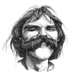 1984Oud wereldkampioen dammen Piet Rozenburg, getekend voor het toenmalige tijdschrift 'De Brouwerij'.