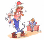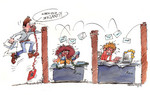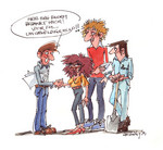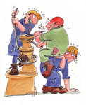 1991Illustratie voor het sociaal jaarverslag van Hoogovens IJmuiden (tegenwoordig: Corus) Techniek: pen en O.I.inkt en aquarel.